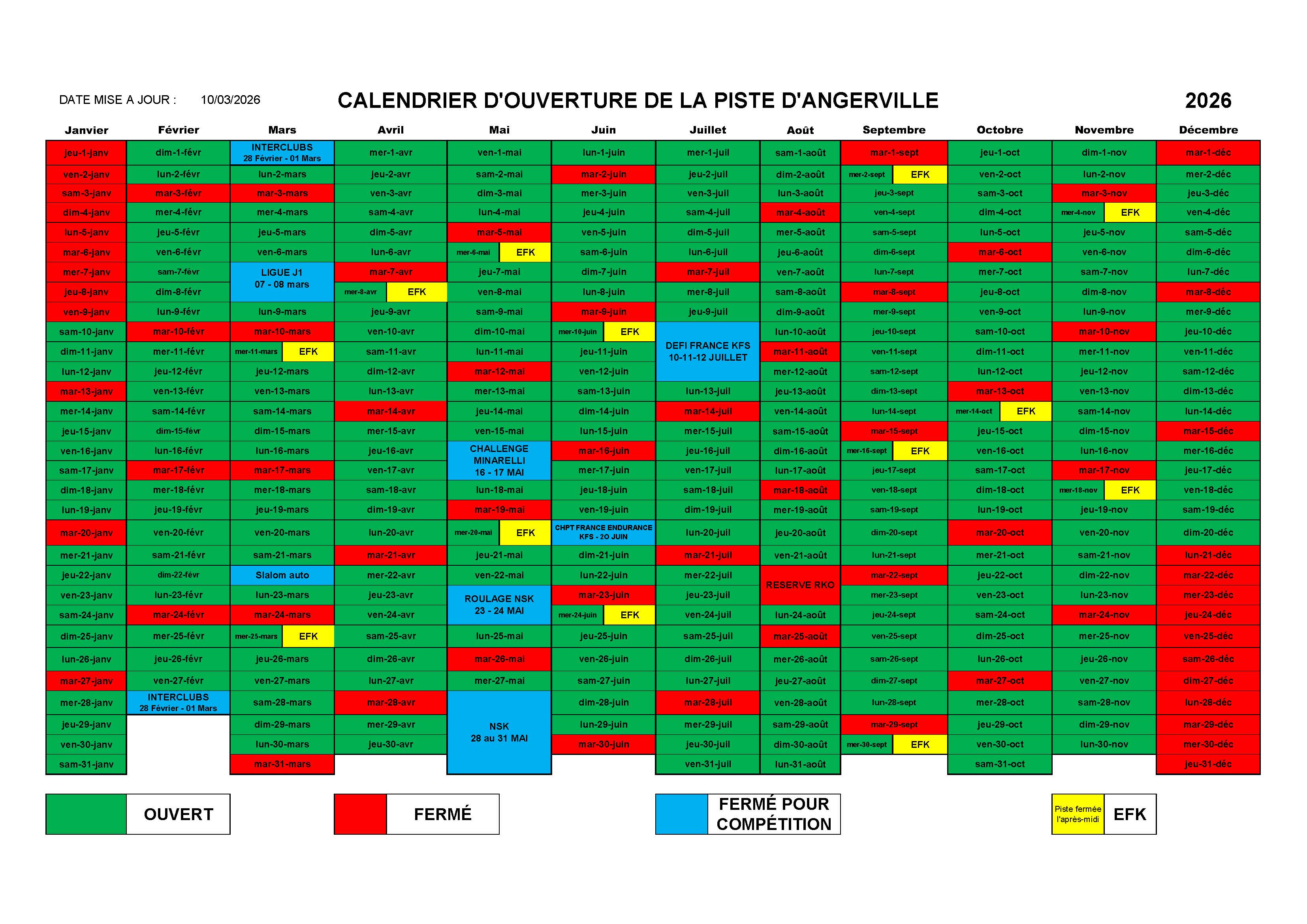Suite à l'annulation du championnat d'Europe "Arrive and Drive" le calendrier des jours d'ouverture de la piste a été mis à jour.